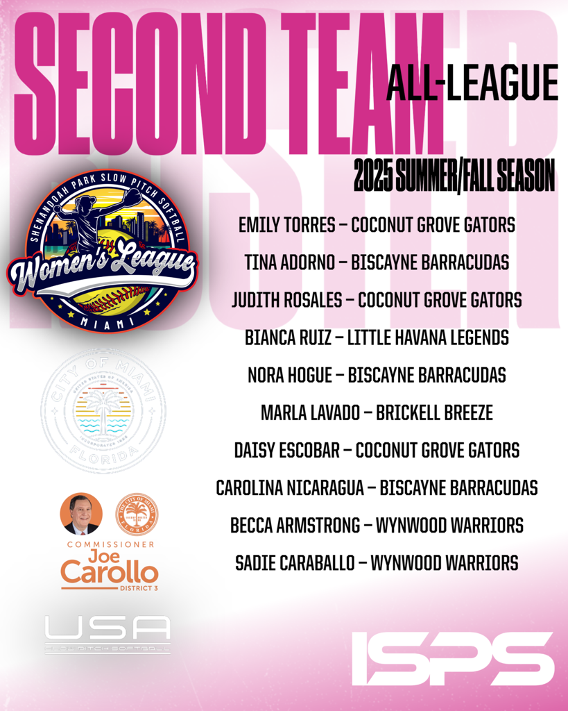 Miami's women's slow pitch softball scene just reached a historic milestone! For the first time ever, the City of Miami Shenandoah Park Women's Slow Pitch Softball League is proud to announce the debut of our First Team All-League and Second Team All-League honors. This groundbreaking recognition celebrates the exceptional talent, dedication, and competitive spirit that defines women's slow pitch softball in the Magic City.